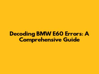 Decoding BMW E60 Errors: A Comprehensive Guide