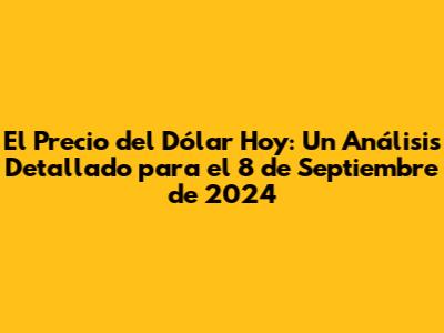¡Hola a todos! Hoy, 8 de septiembre de 2024, vamos a sumergirnos en el fascinante mundo del precio del dólar. Este tema es crucial para muchos, desde inversores y empresarios hasta simples ciudadanos que buscan entender cómo la economía global afecta sus bolsillos. En este artículo, desglosaremos todo lo que necesitas saber sobre el precio del dólar hoy, incluyendo factores influyentes, análisis del mercado y perspectivas futuras. Prepárense para una lectura informativa y, espero, entretenida. Vamos a ello, ¡sin más preámbulos!