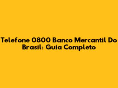 Telefone 0800 Banco Mercantil Do Brasil: Guia Completo