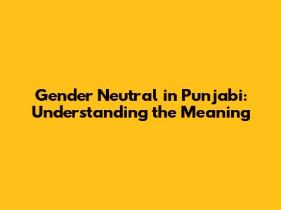 Gender Neutral In Punjabi: Understanding The Meaning
