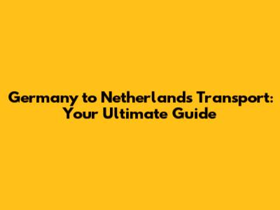 Germany To Netherlands Transport: Your Ultimate Guide