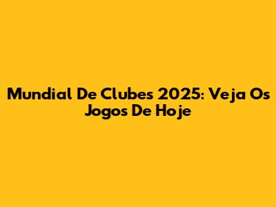 Mundial De Clubes 2025: Veja Os Jogos De Hoje