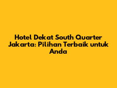 Guys, kalau kalian lagi cari hotel dekat South Quarter Jakarta, berarti kalian udah tepat banget nih! South Quarter (SQ) sendiri adalah kawasan bisnis yang super keren di Jakarta Selatan, dan pastinya banyak banget aktivitas yang bisa kalian lakukan di sana. Nah, buat kalian yang pengen staycation, ada urusan bisnis, atau sekadar pengen jalan-jalan di sekitar SQ, pilihan hotel dekat South Quarter ini bisa jadi solusi terbaik. Di artikel ini, kita bakal bahas tuntas tentang rekomendasi hotel terbaik, tips memilih hotel yang pas, serta informasi penting lainnya yang bakal bikin liburan atau perjalanan bisnis kalian makin nyaman dan berkesan. Yuk, simak!
