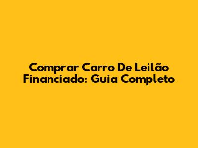 Comprar Carro De Leilão Financiado: Guia Completo