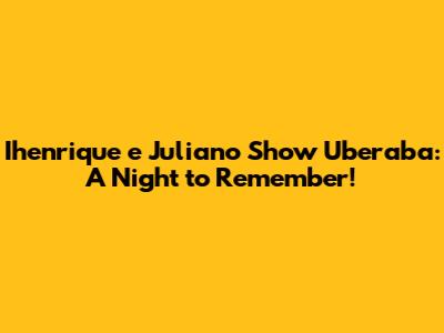 Hey guys! Get ready for an unforgettable night because Ihenrique e Juliano are bringing their incredible show to Uberaba! If you're a fan of sertanejo, this is one event you absolutely cannot miss. This article is your ultimate guide to everything you need to know about the Ihenrique e Juliano show in Uberaba, from the event details to securing your tickets. So, buckle up and let's dive in!