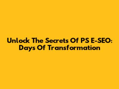 Unlock The Secrets Of PS E-SEO: Days Of Transformation