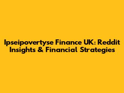 Ipseipovertyse Finance UK: Reddit Insights & Financial Strategies