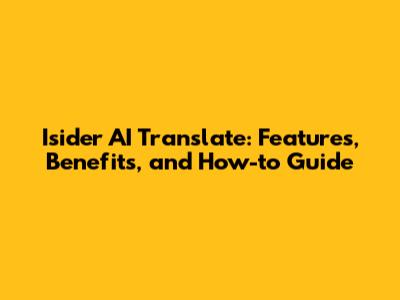 Isider AI Translate: Features, Benefits, And How-to Guide