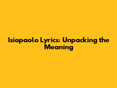 Hey music lovers! Ever stumbled upon a track that just hits different, and you find yourself humming the tune, trying to decipher the words? That's exactly what we're diving into today with the fascinating lyrics of "Isiopaolo." This song, guys, is a real journey, and understanding the lyrics is like unlocking its soul. We'll be breaking down the verses, exploring the themes, and really getting to the heart of what Isiopaolo is trying to tell us. So, grab your headphones, settle in, and let's get lyrical!