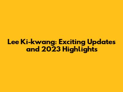 Lee Ki-kwang: Exciting Updates And 2023 Highlights