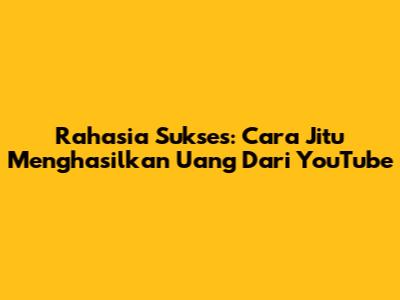 Rahasia Sukses: Cara Jitu Menghasilkan Uang Dari YouTube
