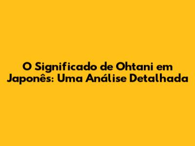 O Significado De Ohtani Em Japonês: Desvendando Os Mistérios