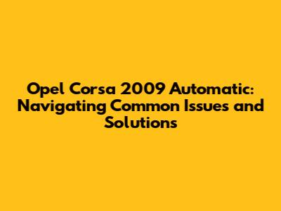 Opel Corsa 2009 Automatic: Common Issues & Solutions