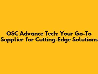 OSC Advance Tech: Your Go-To Supplier For Cutting-Edge Solutions