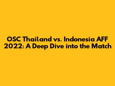 Hey guys! Let's dive deep into the thrilling showdown between Thailand and Indonesia at the AFF Championship 2022, also known as the OSC Thailand vs. Indonesia AFF 2022 match. This wasn't just any game; it was a battle of titans, showcasing the best of Southeast Asian football. We'll break down everything – the key moments, strategic plays, and the players who lit up the pitch. This analysis provides an in-depth look at the OSC Thailand vs. Indonesia AFF 2022 match, covering pre-match expectations, pivotal moments, tactical analyses, and the impact of key players. This will help us understand what makes this match so important. The OSC Thailand vs. Indonesia AFF 2022 match, with its high stakes and intense rivalry, offered a masterclass in Southeast Asian football. We will also explore the strategic battles and highlight the individual brilliance that defined this encounter, ensuring you have a comprehensive understanding of the event. Analyzing the OSC Thailand vs. Indonesia AFF 2022 match involves looking at various elements, from the pre-match hype to the post-match analysis. So, grab your snacks, get comfy, and let's get started.