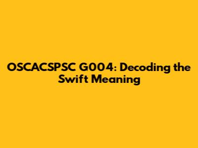 Deconstructing OSCACSPSC G004: What Does 'G004' Signify?