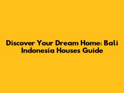 Discover Your Dream Home: Bali Indonesia Houses Guide