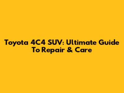 Toyota 4C4 SUV: Ultimate Guide To Repair & Care