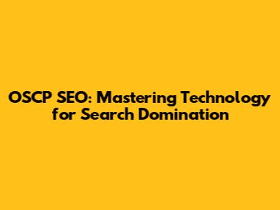 OSCP SEO: Mastering Technology For Search Domination