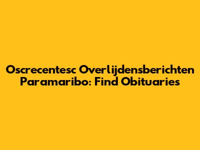 Oscrecentesc Overlijdensberichten Paramaribo: Find Obituaries