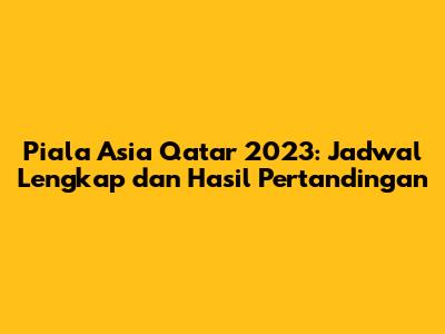 Piala Asia Qatar 2023 adalah turnamen sepak bola yang sangat menarik untuk diikuti. Dengan jadwal lengkap dan hasil pertandingan yang selalu अपडेट, Anda bisa selalu mendapatkan informasi terbaru dan terpercaya. Jangan lewatkan momen-momen mendebarkan dan aksi-aksi terbaik dari para pemain bintang. Selamat menikmati Piala Asia Qatar 2023!