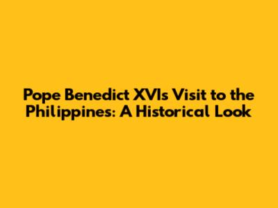 Pope Benedict XVI's Visit To The Philippines: A Historical Look