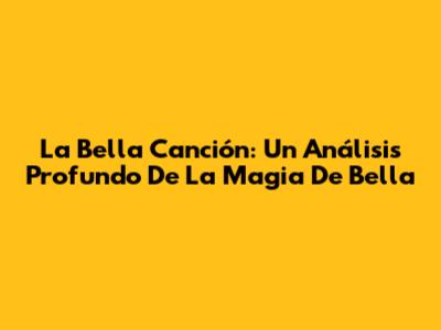 La Bella Canción: Un Análisis Profundo De La Magia De 'Bella'