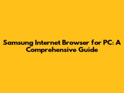 Samsung Internet Browser For PC: A Comprehensive Guide