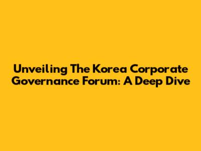 Unveiling The Korea Corporate Governance Forum: A Deep Dive