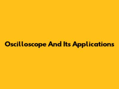 Oscilloscope And Its Applications