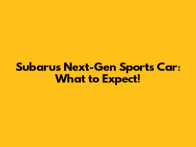 Subaru's Next-Gen Sports Car: What To Expect!