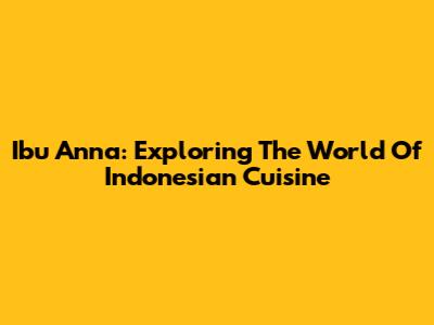 Ibu Anna: Exploring The World Of Indonesian Cuisine