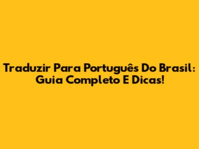 Traduzir Para Português Do Brasil: Guia Completo E Dicas!