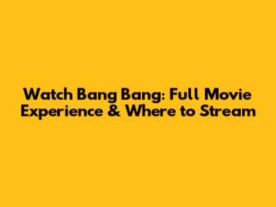 Watch Bang Bang: Full Movie Experience & Where To Stream