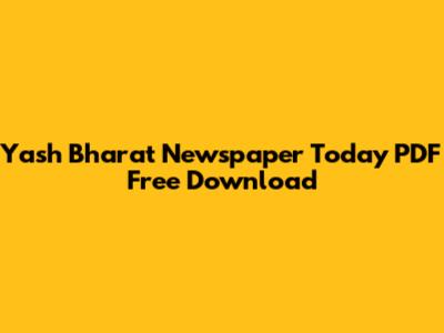 Yash Bharat Newspaper: Download Today's PDF For Free